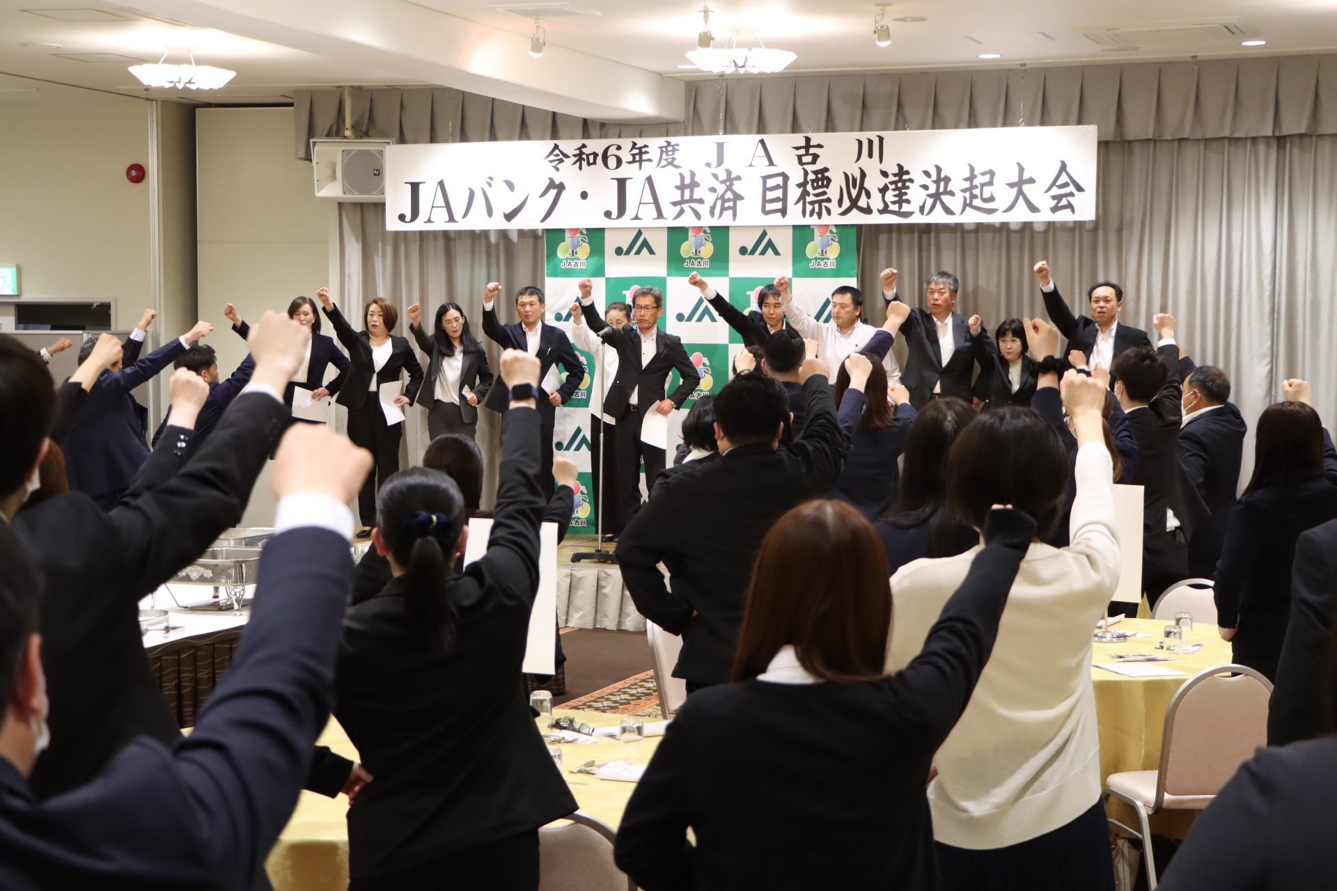 JAは5月17日、大崎市のグランド平成で令和6年度JAバンク・JA共済目標必達決起大会を開き、担当職員ら85人が参加しました。