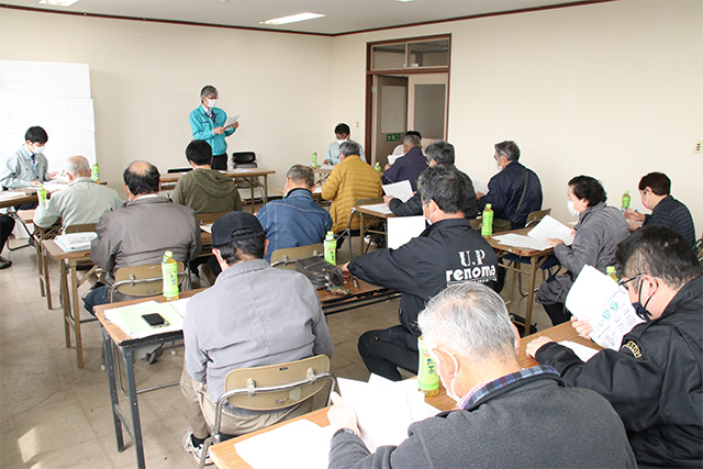 4月6日、JA富永調整所で転作エダマメ栽培講習会を開きました。栽培方法を確認し、出荷期間中に切れ目なく出荷できるよう播種計画を協議しました。園芸担当職員が栽培のポイントを説明。今年度から新たに作付ける品種の特徴や栽植密度、除草剤の変更点などを指導しました。病害虫防除について講師を務めた、大崎農業改良普及センターの担当者は「エダマメは開花期以降に受ける病害虫被害が品質に直結する。この時期の対策が非常に重要」と主な害虫の生態や防除について説明しました。市場からは7月下旬から10月上旬までの出荷期に平均的に出荷するよう要望があり、4品種のエダマメの作付体系を調整し、切れ目ない出荷を目指しています。