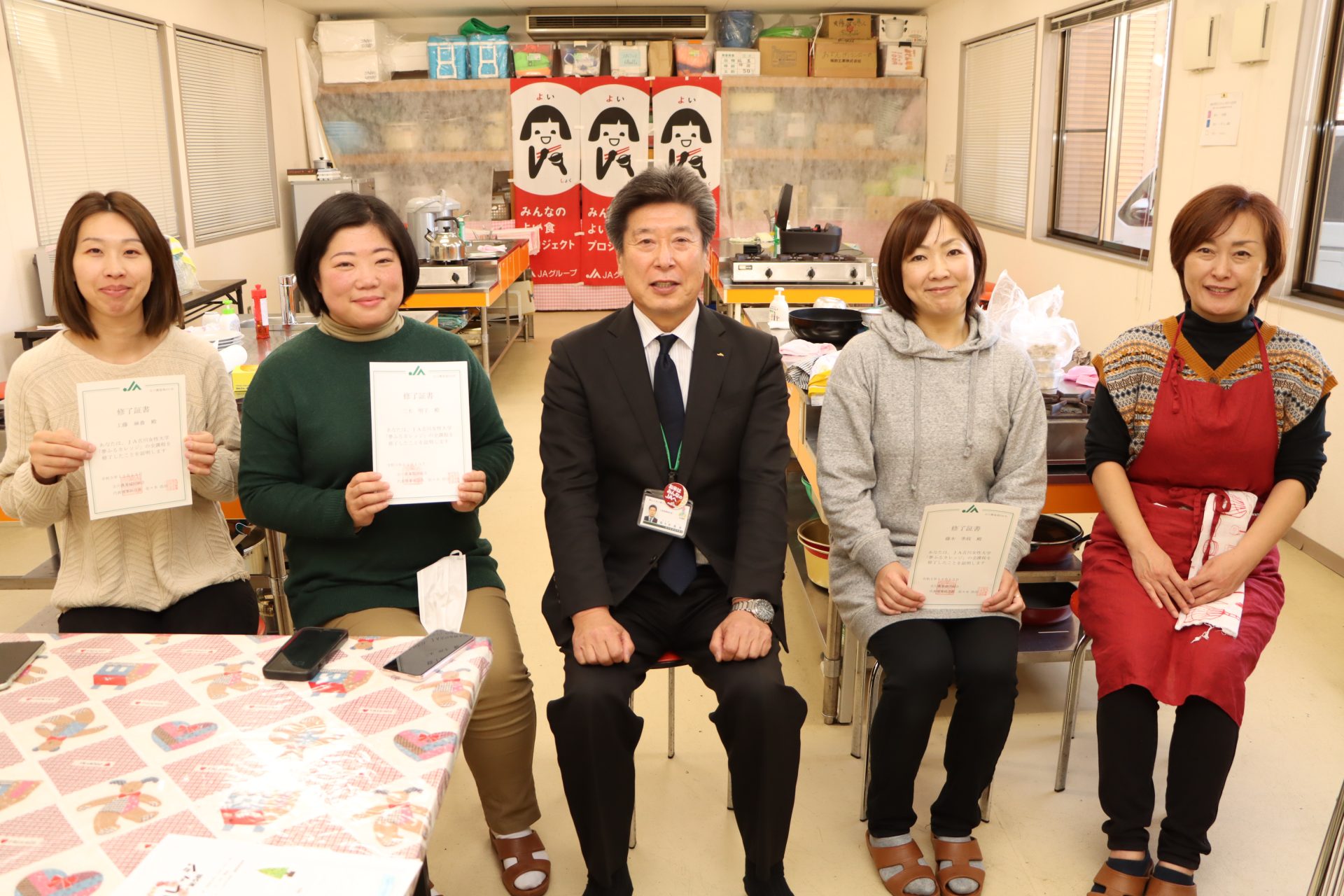 JAでは、次世代を担う女性組合員や地域の女性に学習の機会を提供し、仲間づくりとJA事業への参加・参画するリーダー的人材を育成することを目的に、同大学を開講。4期は全5回の講座を開いており、4人が受講しました。