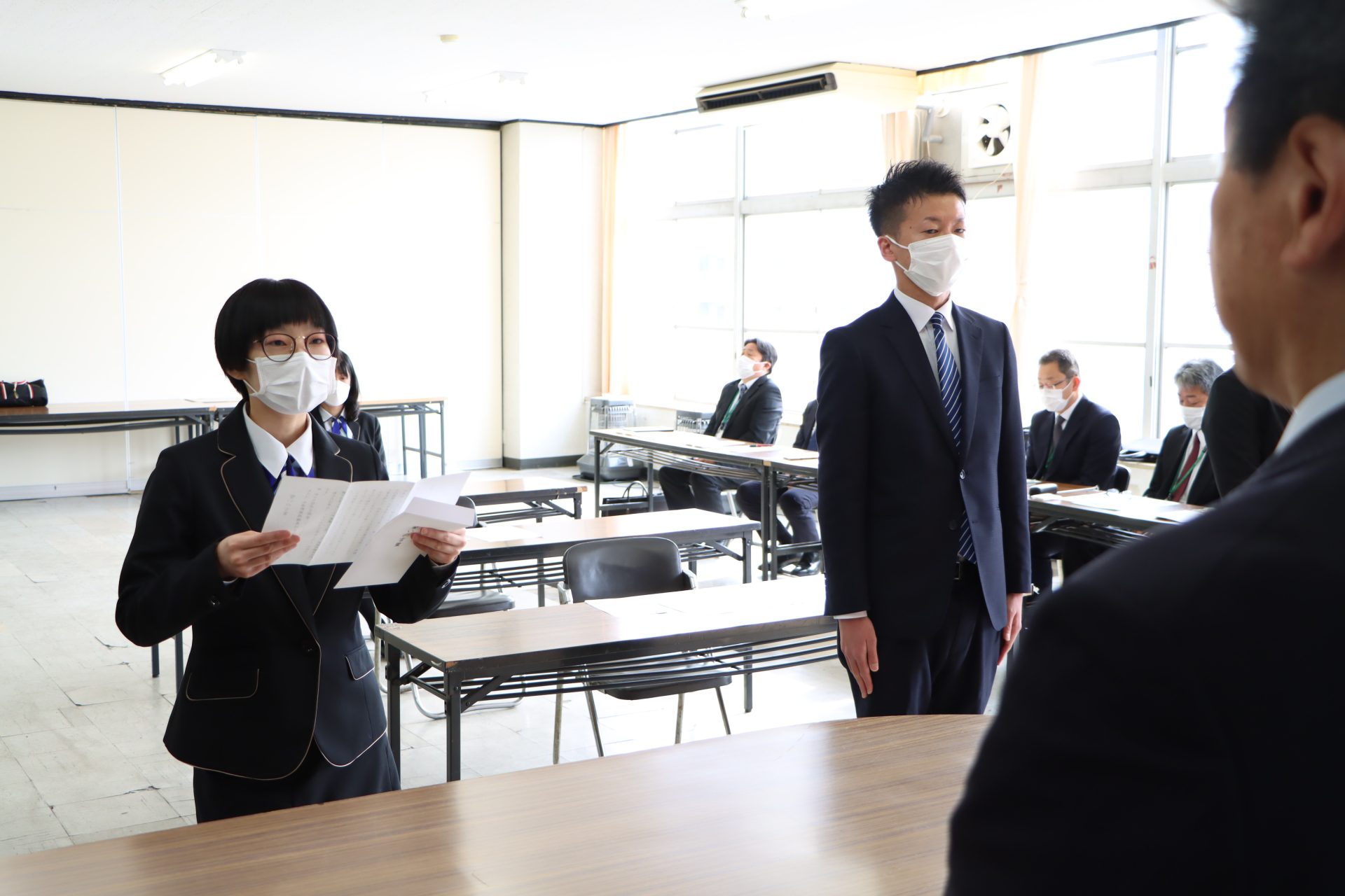 誓いの言葉を述べる多田さん(左)