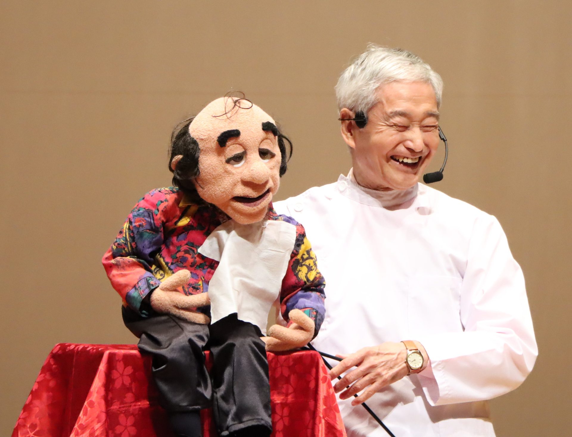 総会後には、日本笑い学会東北支部の千葉俊一支部長を講師に迎え「お口のフレイル予防と腹話術」と題し、記念講演を行いました。ユーモア溢れる講話に出席者からは笑い声が絶えませんでした。
