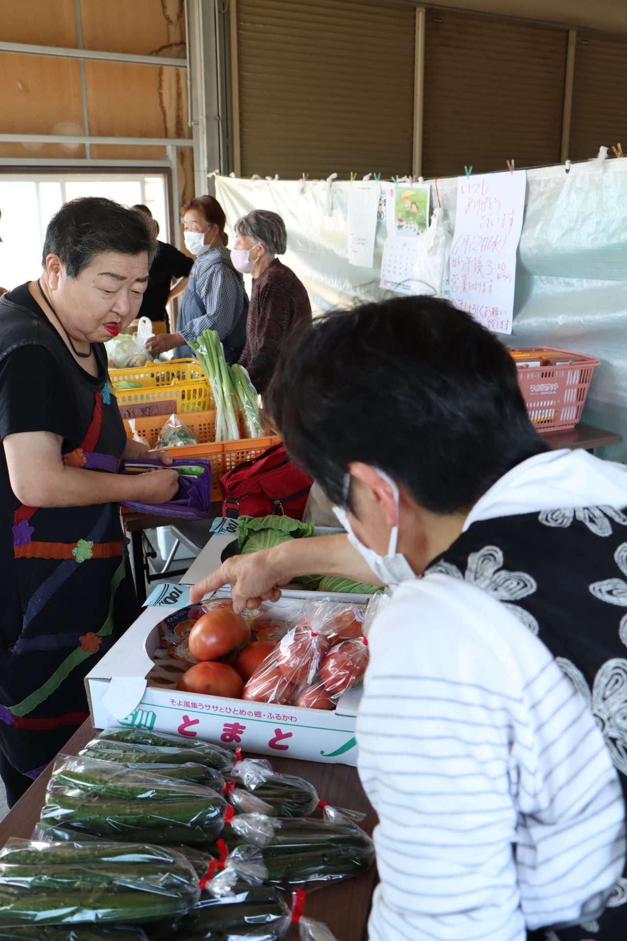 JA女性部は6月5日、農産物直売所「ばんがた(夕方)市」の営業を始めました。12月まで新鮮な野菜などを販売しています。