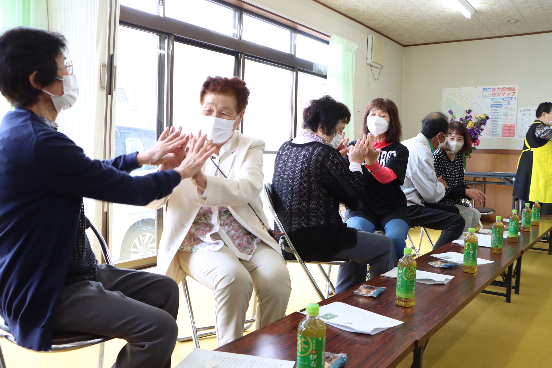 この日は令和6年度初開催となり、地域の高齢者15人が参加。にじの会によるレクリエーションでは歌や体操、ミニゲームなどを楽しみました。