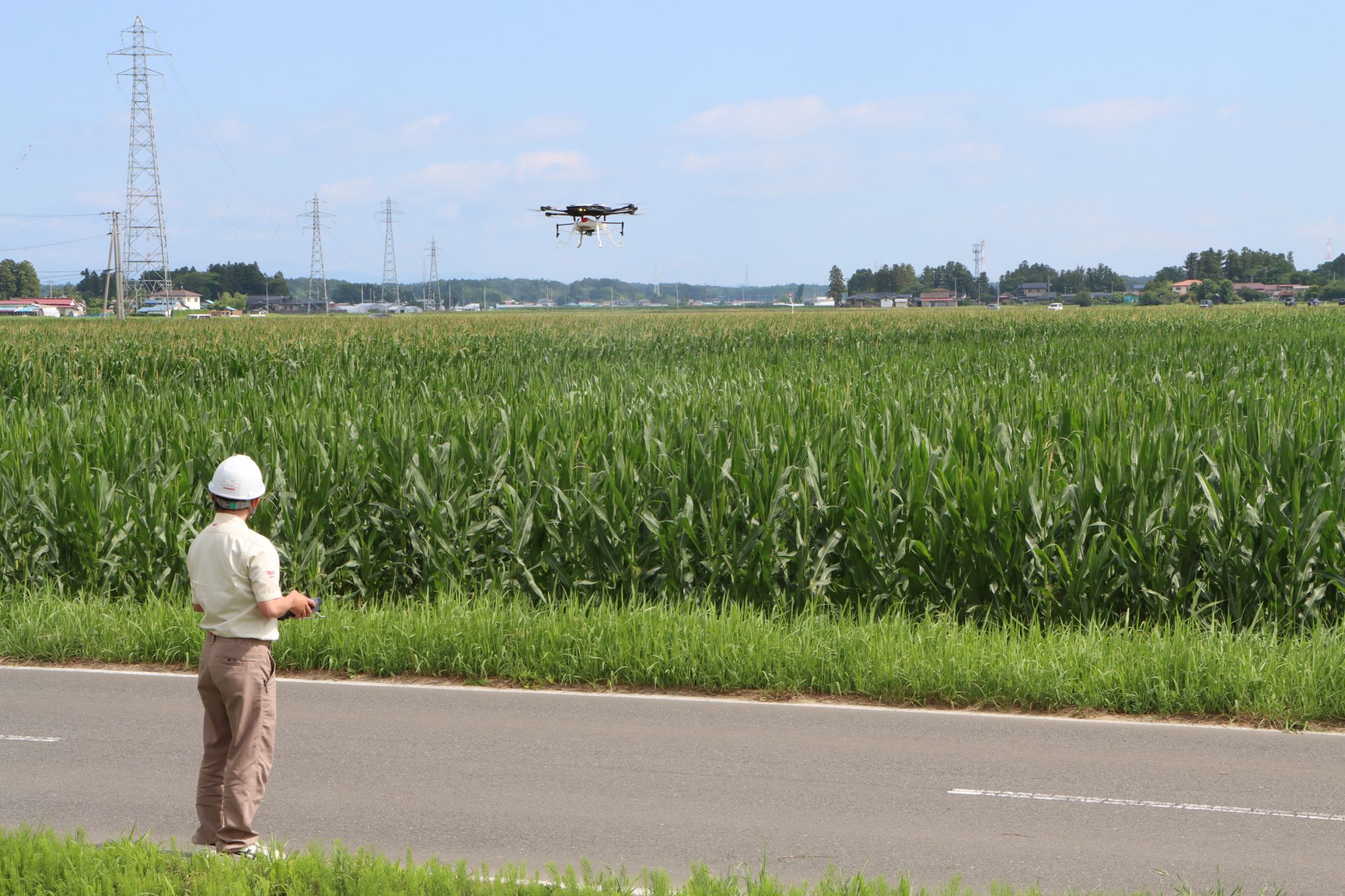 JAは7月2日、富永地区の圃場でドローンを使用した病害虫防除の実演会を実施しました。4日には、4月に播種した子実とうもろこしの圃場71㌶で病害虫防除を行いました。