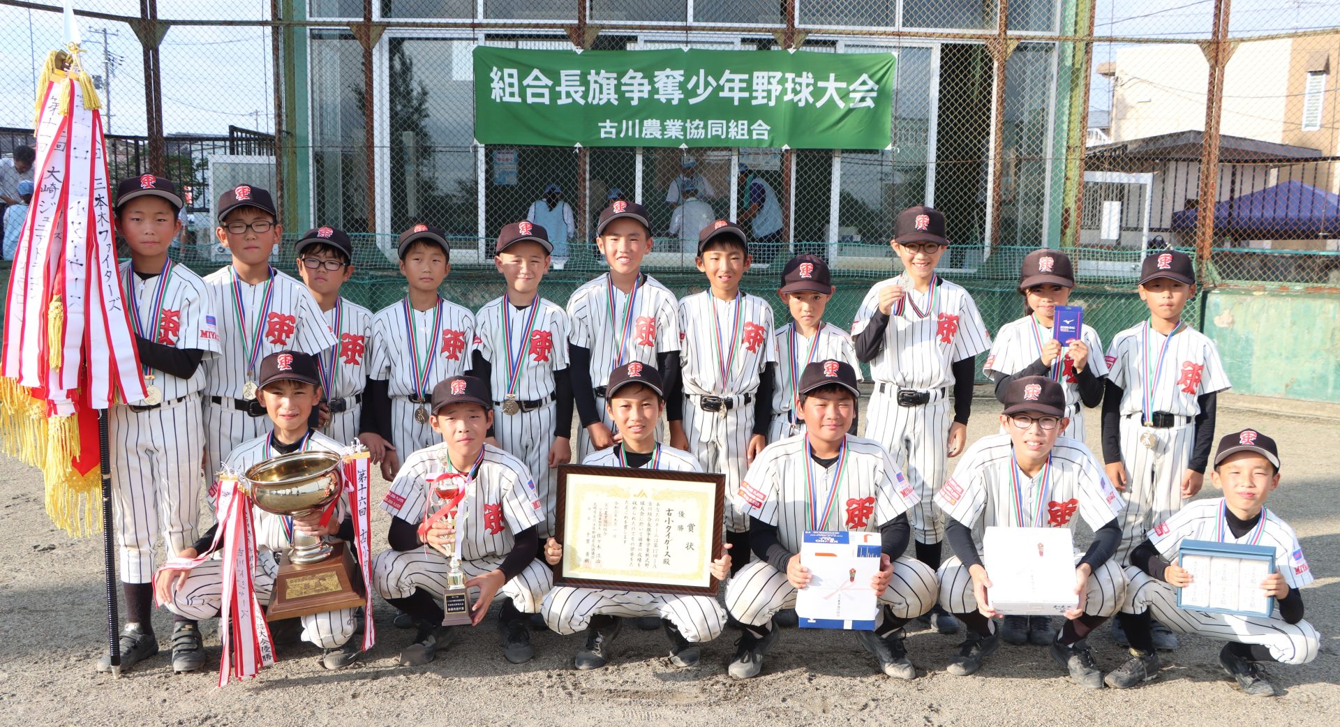 1日、同市諏訪球場で行った決勝戦では、古小タイガースが古川スワローズに5対3で勝利しました。最優秀選手賞には、古小タイガースの工藤瑞己選手、優秀選手賞には、古川スワローズの猪股暖生選手が選ばれました。