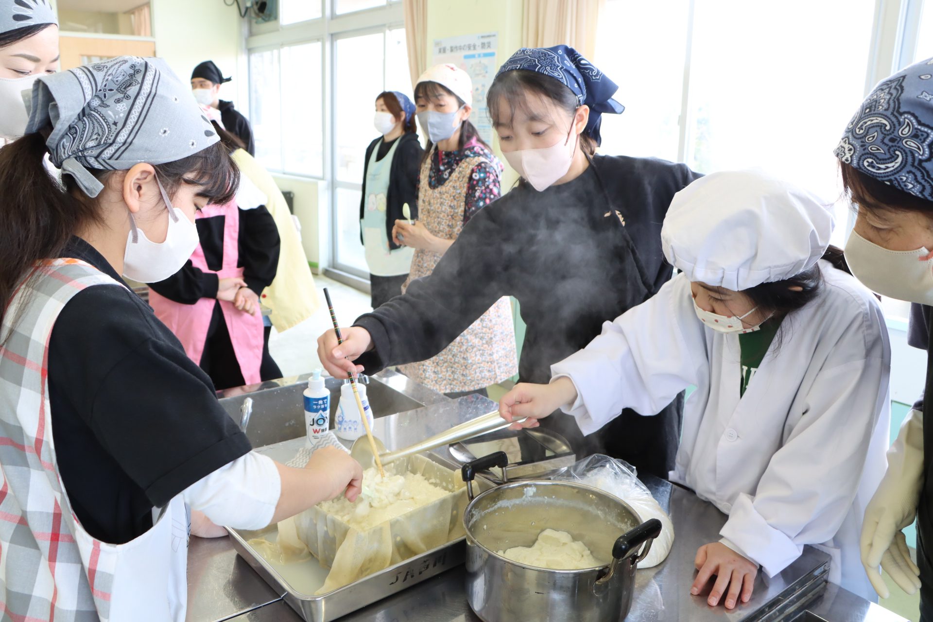 JAは1月30日、大崎市立敷玉小学校の4年生20人に豆腐作りを指導しました。