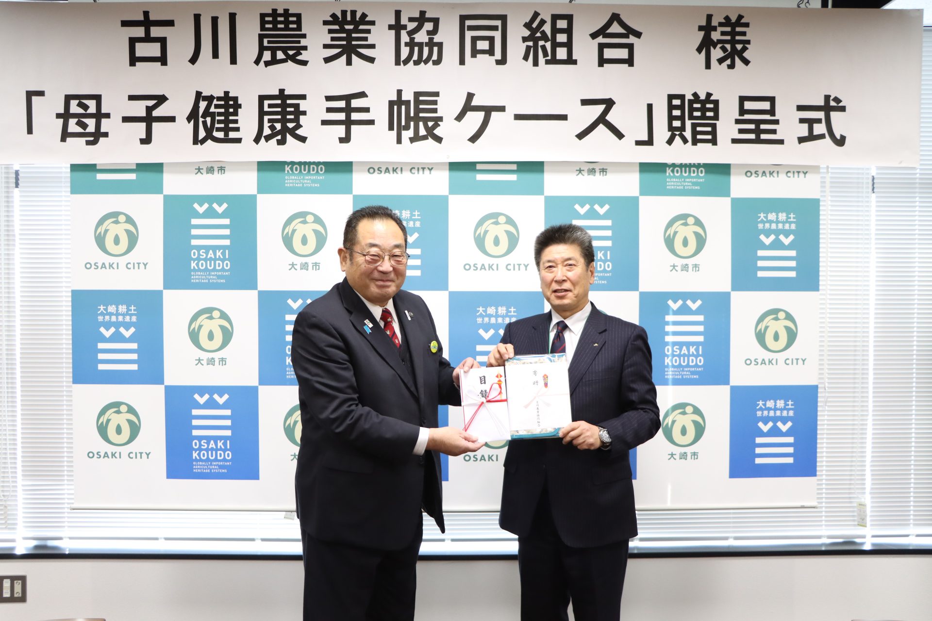 JAは1月20日、大崎市に母子健康手帳ケース650個を寄贈しました。