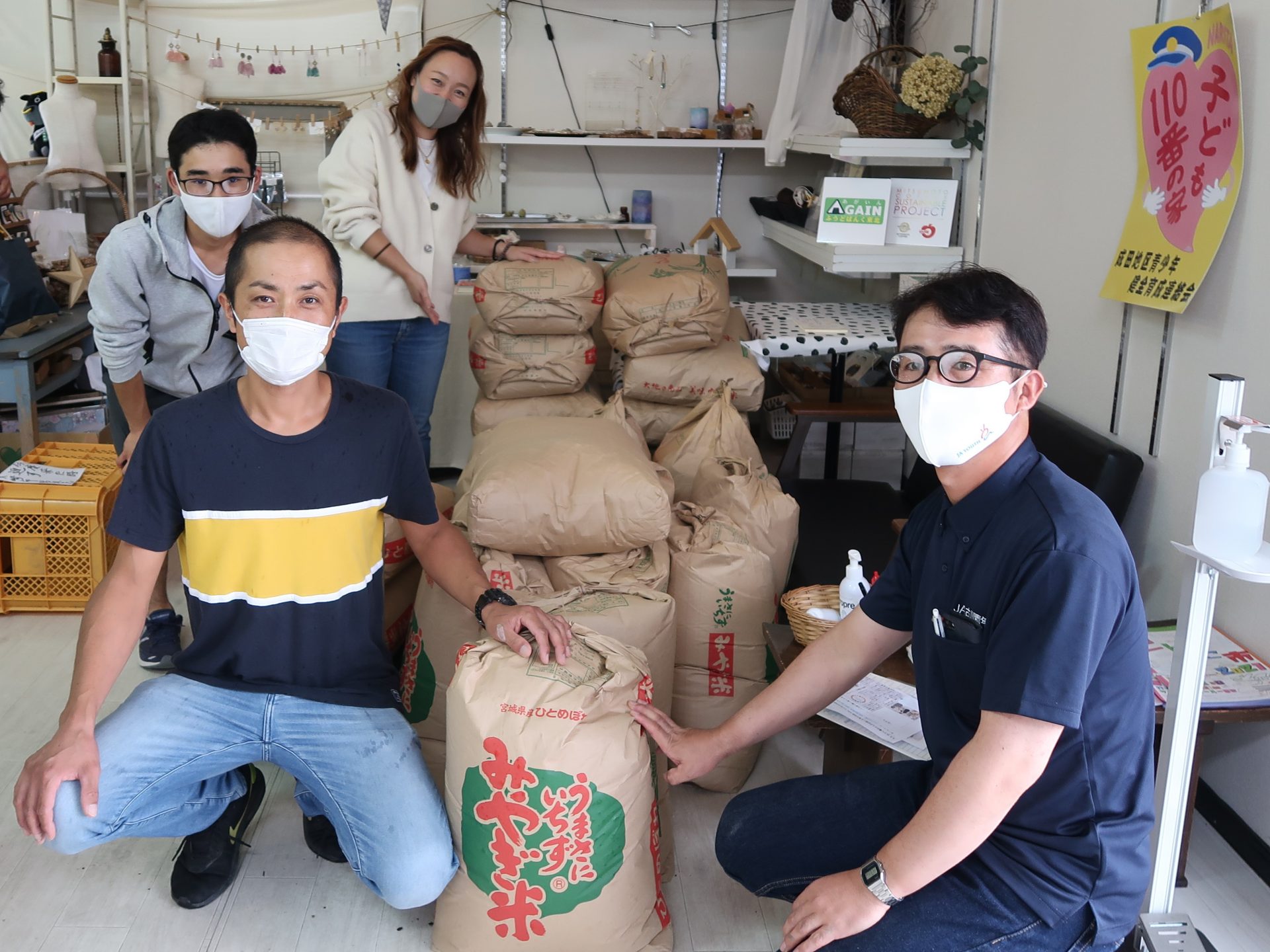 青年部は9月6日と10日、NPO法人ふうどばんく東北AGAIN(あがいん)に、部員が生産した玄米900キロを寄付しました。コロナ禍で困窮する大学生への支援を中心に配布されます。 6月に続き2回目の寄付で、部員が富谷市にある法人を訪れ、「ひとめぼれ」や「ササニシキ」などを6日に600キロ、10日に300キロ届けました。同法人の富樫花奈さんは「新米が取れる前の今時期は米が不足しがちになるので、たくさんの米をいただけて本当にありがたい。青年部の皆さんの関心の高さや底力を感じる」と感謝していました。同部の佐々木政彰委員長は「部員の協力で想像以上に多くの米が集まった。今後も定期的な寄付を続けたい」と話していました。 同部は令和2年からフードバンク活動に取り組んでいます。