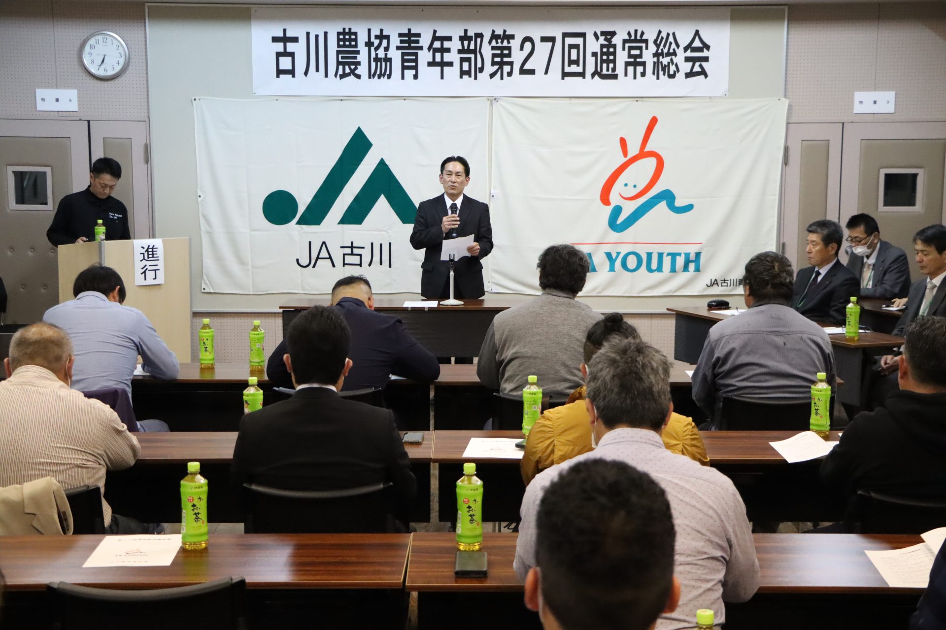 JA青年部は4月11日、本店で第27回通常総会を開き、18人の盟友が出席。令和7年度の事業計画など全3議案を承認しました。