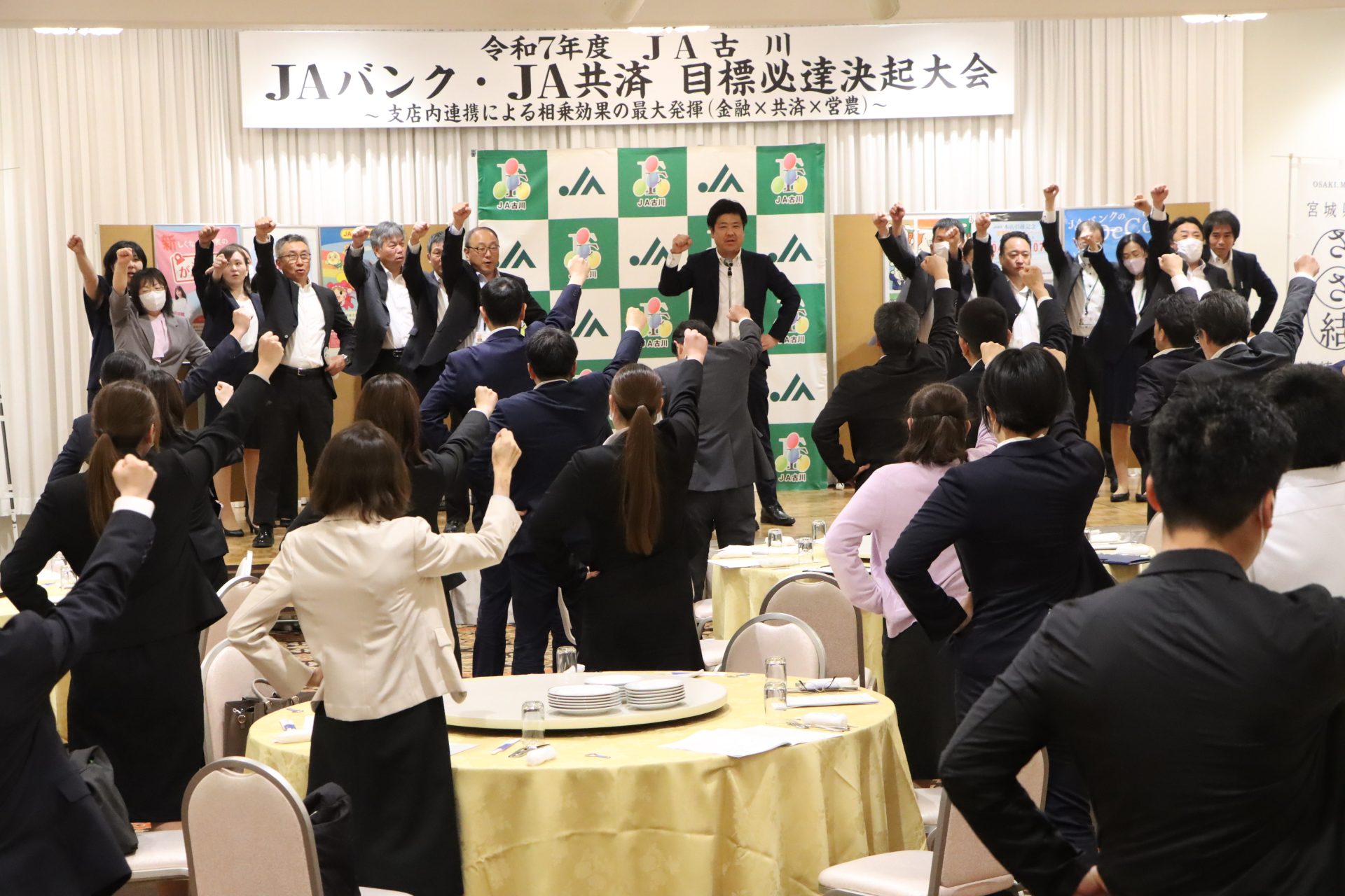 JAは5月16日、グランド平成で令和7年度JAバンク・JA共済目標必達決起大会を開きました。