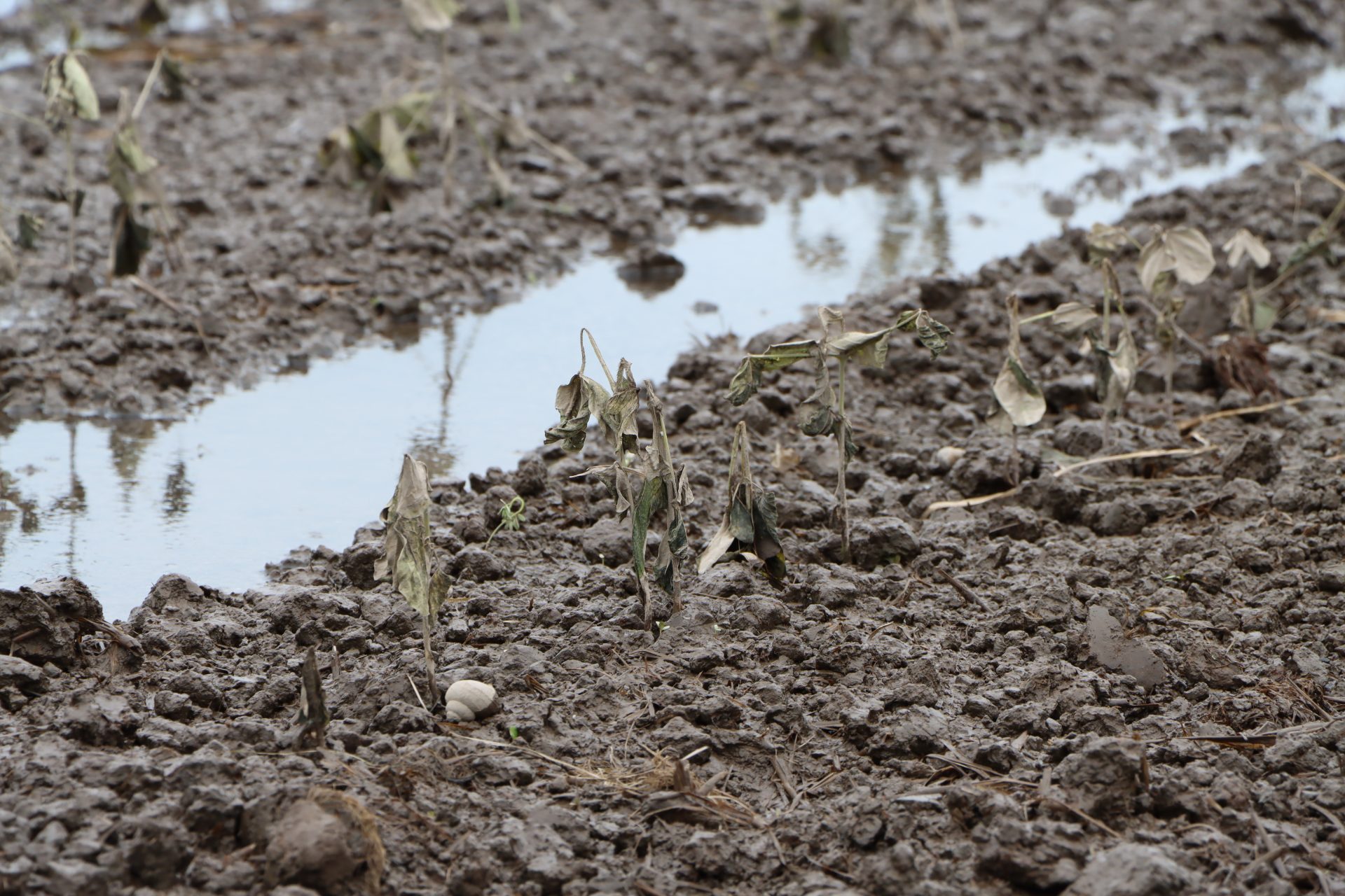 古川矢目地区を流れる名蓋川の決壊や河川の増水などにより、水稲約2,000ヘクタール、大豆約1,220ヘクタール、子実用トウモロコシ約90ヘクタールが浸水、冠水被害を受けました。大豆は、そのほとんどの圃場で枯死寸前の状態が見られ、数日間冠水していた圃場では、回復不能の状態となっています。