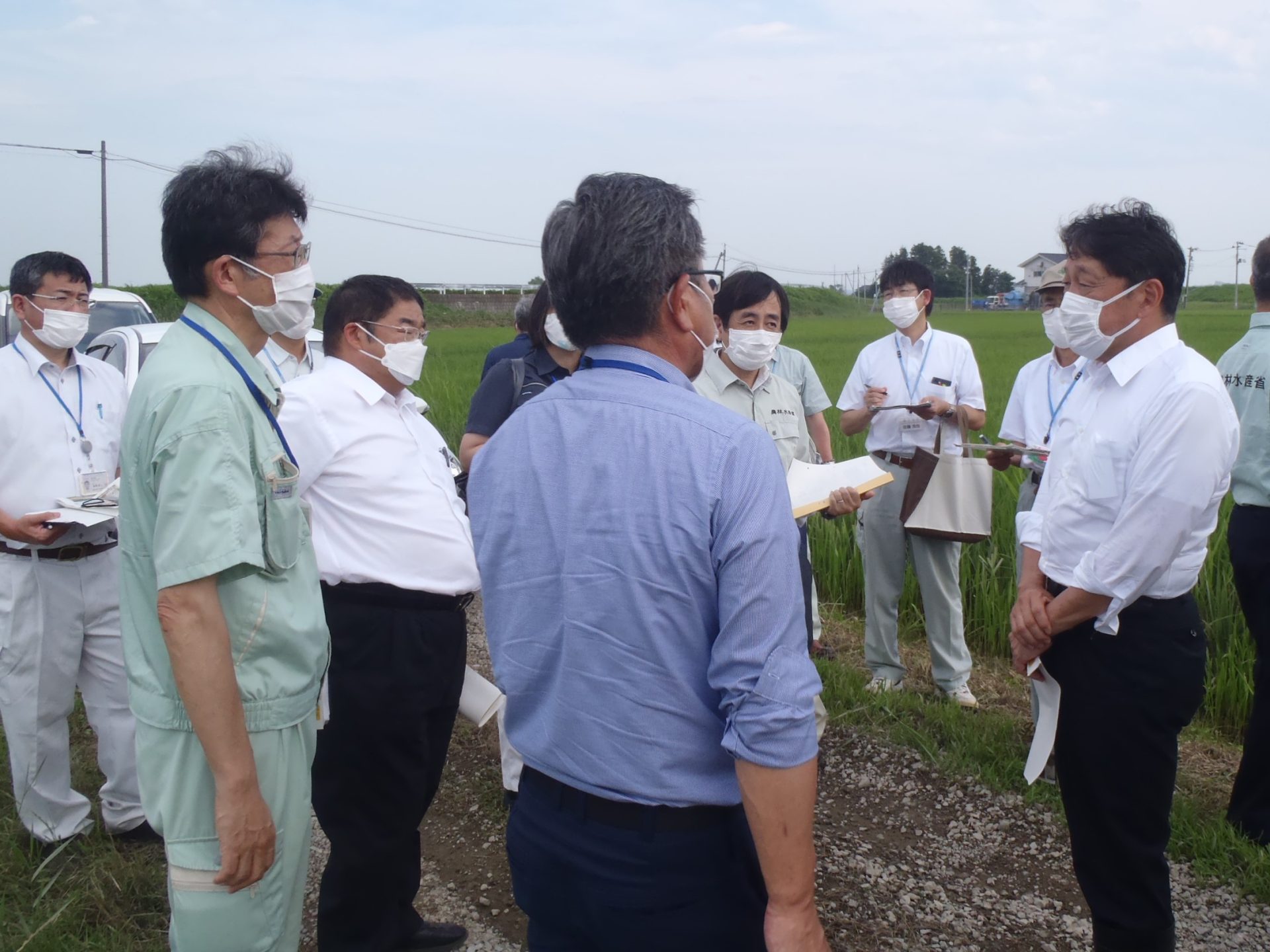 管内でも特に被害が大きかった古川矢目地区と西荒井地区を視察。決壊した名蓋川の氾濫場所や農作物を確認しました。水稲の圃場では、出穂直前の状況を確認し、被害がどの程度になるかを聞き取りしました。