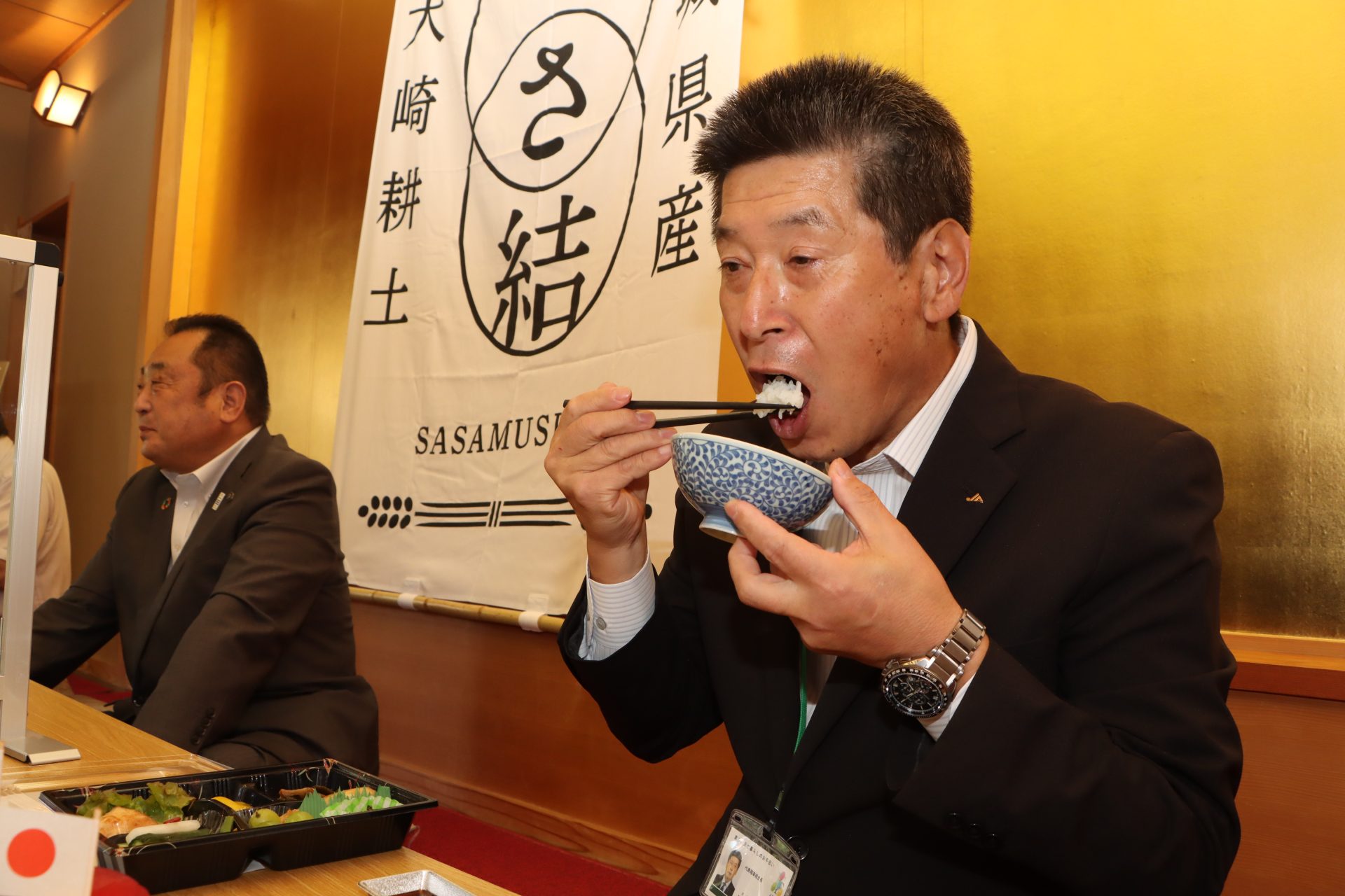 コンソーシアム副代表であるJA古川の佐々木浩治組合長は「香りがよく大変おいしかった。『ささ結』は実需者からの要望が非常に増えている。対策を講じながら作付け拡大に努めたい」と話していました。
